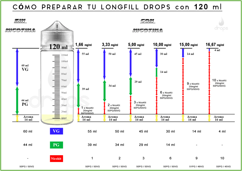 ¿Cómo completar el longfill DROPS de 16 ml para botella de 120 ml?