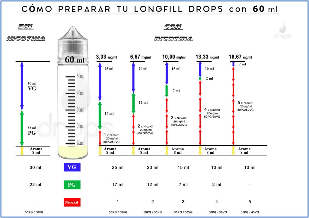 Con los últimos cambios en formatos, volúmenes y regulaciones, a muchos vapeadores nos está resultando complejo saber cómo tenemos que rellenar el formato longfill para adaptarlo a nuestros gustos, sobre todo para calcular la cantidad de nicotina – si la usamos – a la que estamos habituados y sin desvirtuar las características óptimas para las que está formulado el líquido por el fabricante, ya que según cómo lo hagamos podemos llegar a cambiar totalmente el sabor y las sensaciones que nos proporcionaría un líquido en las condiciones adecuadas.